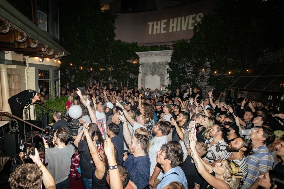 Pelle Almqvist and The Hives are prepping for an intimate gig at Hollywood’s No Vacancy. His voice is a little ragged from previous nights’ shows as he plops down near the Georgian windows on the upper level of the venue. Dinner is prepared, and the band is taking a breather around one of the bar areas upstairs. We’re talking about the current The Hives Forever Forever The Hives tour, where Almqvist has regularly encouraged his fans to put their cell phones away and enjoy the show (he’ll do it again later tonight at No Vacancy, though no phones will be tossed onto the stage this time). Almqvist loves touring with his longtime friends, but has a workmanlike humility about it. Each audience is a little different, and the band attempts to meet each moment every night.