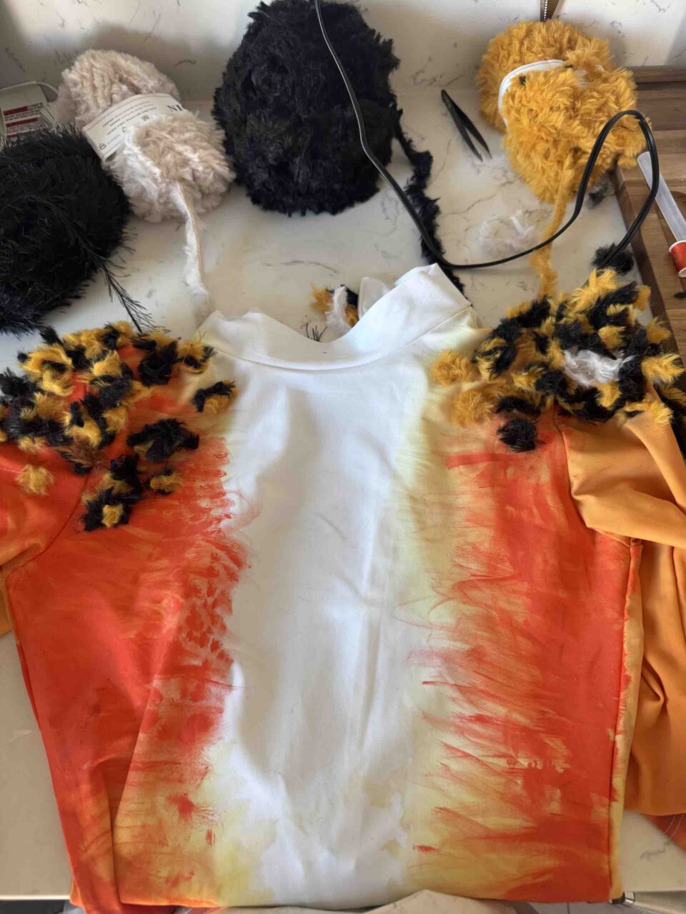 Days before tour, Haute dyes the cat suites for NYC’s broadway dress code, suffers second-degree burn to middle finger, and carries on bravely.