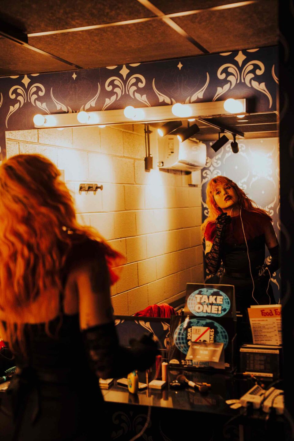 Backstage DC at the Atlantis. The dresscode: “Vampire’s Feast.” Haute puts in her in-ears, ready to slay (vampiric pun intended).