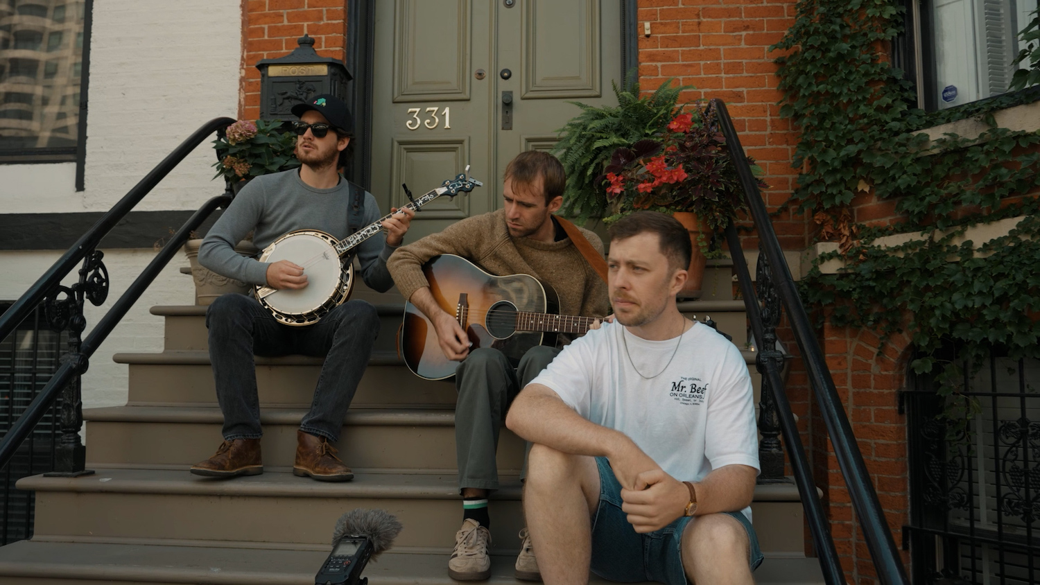 Far from the green pastures of their homeland, Kingfishr recorded a “Neighborhoods” session in the midst of their most recent US takeover. Set up on a stoop in Chicago’s Lincoln Park near the area’s Park West venue ahead of their show there last month, the trio gave a spirited performance of “Killeagh” stripped down to acoustic guitar, banjo, and vocals. Naturally, frontman Eddie Keogh rocks a Mr. Beef tee. Check it out below.