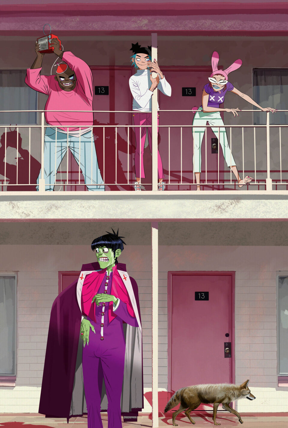“Moving forward, the way it works is we often go off on an adventure somewhere and an idea comes, and then it’s just conversations, with Damon sending music and me sending drawings,” says Hewlett. “And it just sort of grows from that. We’ve been doing it so long, it’s kind of like second nature now. The problem isn’t how to do it, but where to go to be inspired.”