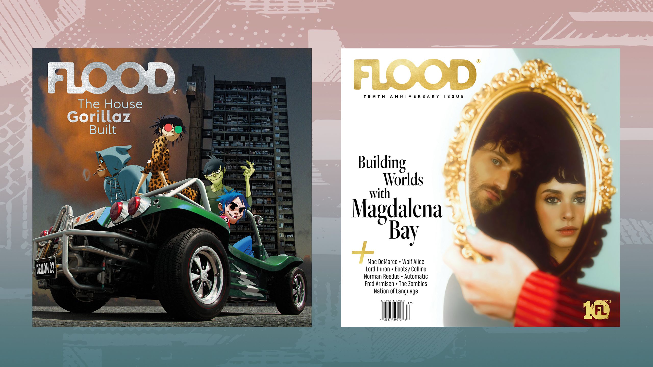 While we commemorate a decade of FLOOD, we are also celebrating 25 years of Gorillaz, with a career-spanning cover interview with Damon Albarn and Jamie Hewlett on their visionary project, along with insights from De La Soul and Little Dragon, and 16 pages of incredible images from their vaults.