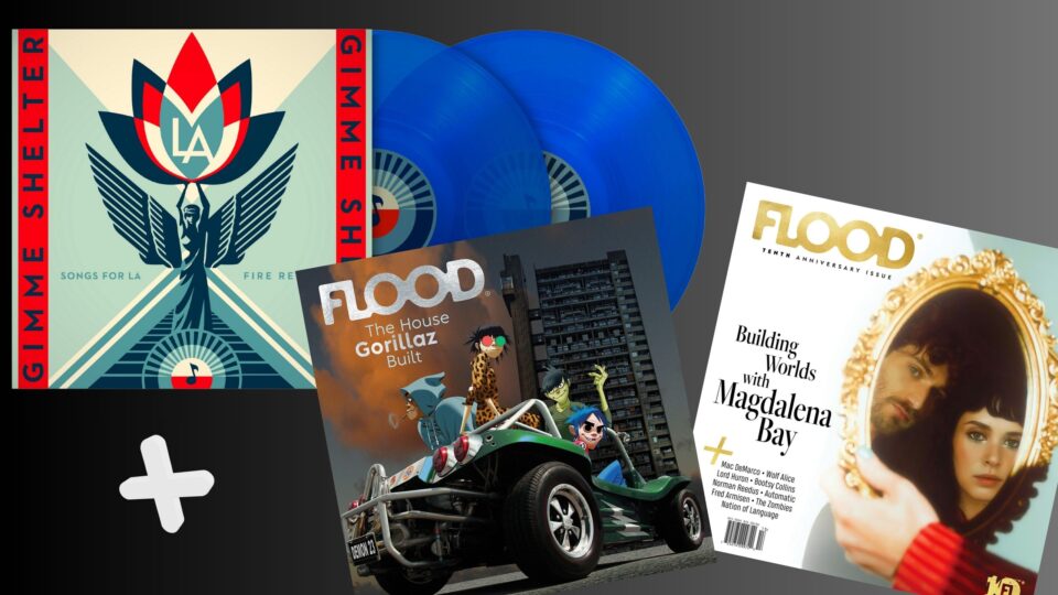 For a limited time, we are also making a bundle available at a special discounted rate of $50 with both Gimme Shelter: Songs for LA Fire Relief, our recently announced double benefit album, and the FLOOD 13 print issue. Gimme Shelter features double translucent blue albums with packaging designed by Shepard Fairey, along with 18 rare recordings by Elliott Smith, Rilo Kiley, Local Natives, Flaming Lips, Norah Jones, Chromeo, Poolside, Dawes, and more. $35.98 from each bundle sale directly supports wildfire relief efforts in Altadena and Pacific Palisades.