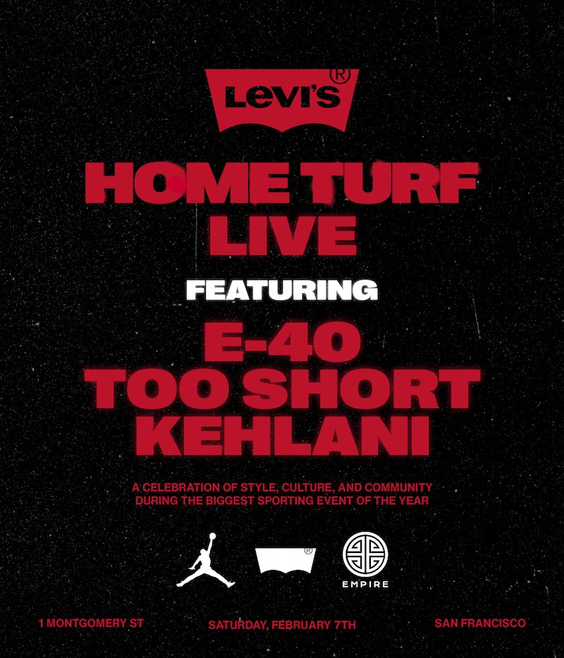 For the first time in a decade, the Super Bowl is returning to the Bay Area next week for the event’s 60th edition. Given that the Seahawks and Patriots will be facing off in Levi’s Stadium, it’s only natural that the hometown brand made the most of the weekend leading up to The Big Game with a three-day pop-up event in San Francisco’s Financial District they’re calling “Home Turf.” In addition to exclusive Levi’s apparel drops, the event—which runs from February 5 – 7—will feature live appearances from Bay Area luminaries curated in partnership with EMPIRE, including Kehlani, iconic emcees E-40 and Too Short, and Vallejo-bred rapper LaRussell, as well as performances from Souls of Mischief, P-Lo, Goapele, and more as a part of NPR’s “Tiny Desk Experience.”