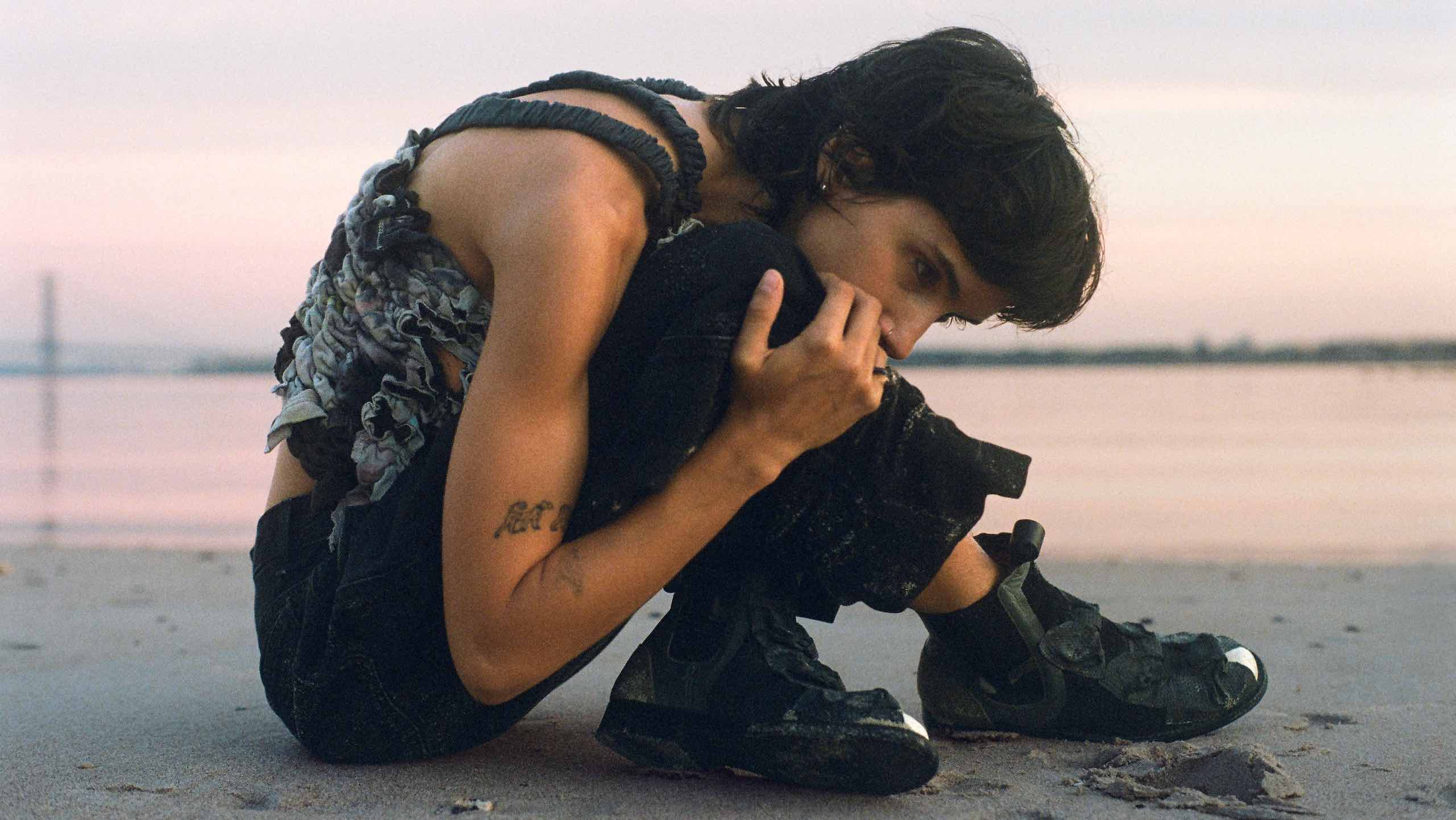The music video leans into its source material as it sees Ortiz languidly posted up on the shore. “The vision for the video came from my friend Sai Tripathi,” she shares. “We’ve been working together visually since middle school, when she started making music videos for my songs. It’s a really special and long-running collaboration. She had images that she wanted and certain qualities of movement she wanted, with this kind of monster/creature character in mind, and we did all that in LA, mostly at the beach.”