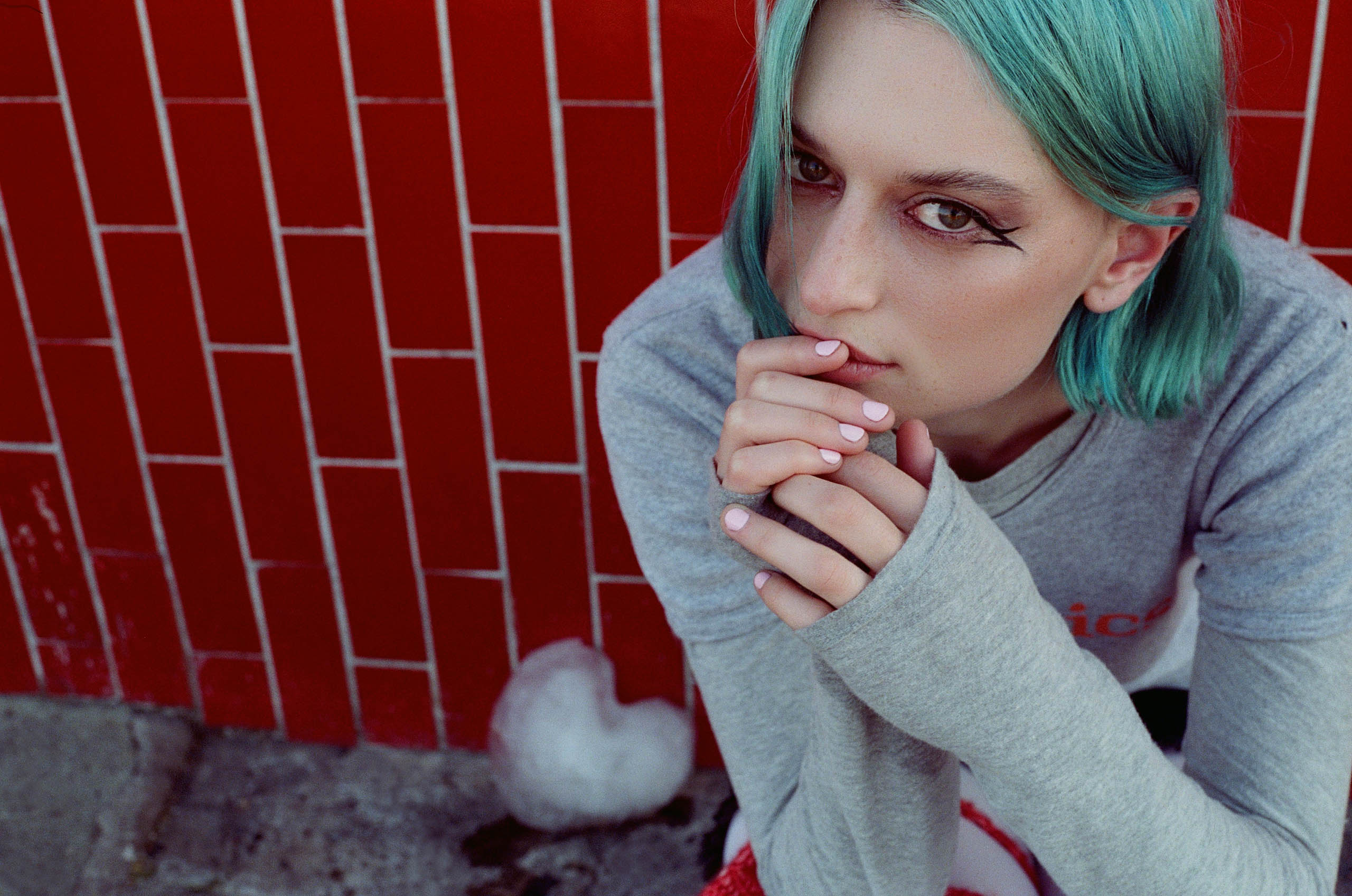 The poor internet connection makes it feel like I’m speaking to Oxis underwater, and it’s oddly fitting rather than disorienting. The artist has built an entire sonic universe from aquatic instinct: thrumming electronics, chopped-and-spiraling vocals, rhythms that move with tidal patience. Through the pixelated video call from her car in Los Angeles, her aquamarine hair catches the light like treasure glinting beneath the surface. Her voice is soft and playful as she embroiders the answers to my questions with long, thoughtful “hmms.”