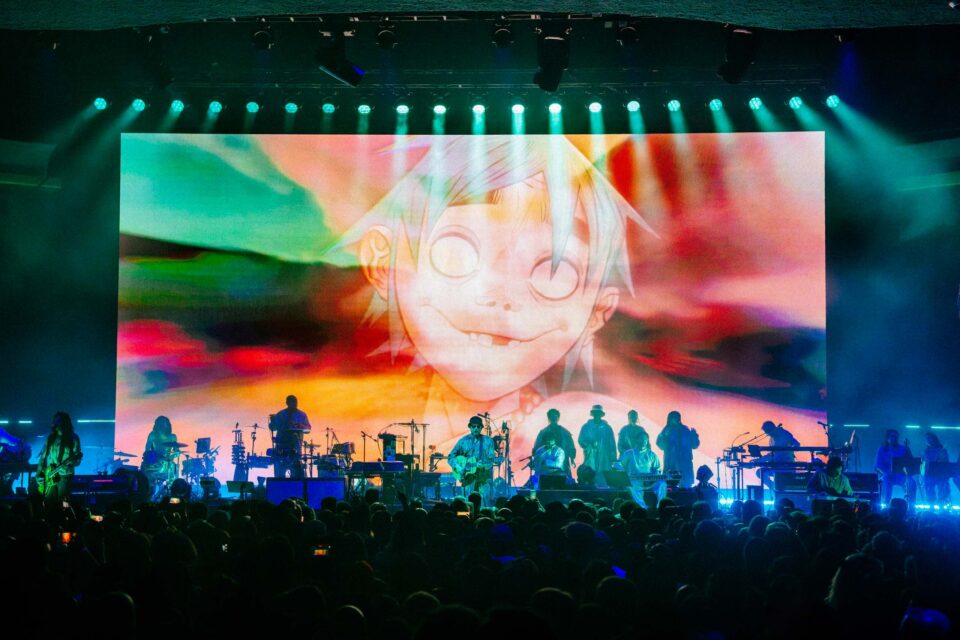 Gorillaz’s Los Angeles takeover is in full effect. Damon Albarn and Jamie Hewlett’s iconic multimedia project played two nights at the Hollywood Palladium this week, with Albarn and a host of guests previewing their entire new album The Mountain—due out this Friday—along with a selection of their biggest hits (“Feel Good Inc.,” “Clint Eastwood,” “Rock the House”). The performances of The Mountain included appearances by album collaborators Sparks, Black Thought, Asha Puthli, IDLES’s Joe Talbot, and Kara Jackson, with the latter evening closing with a hits-packed encore featuring Pos from De La Soul, Bootie Brown, and Del the Funky Homosapien.