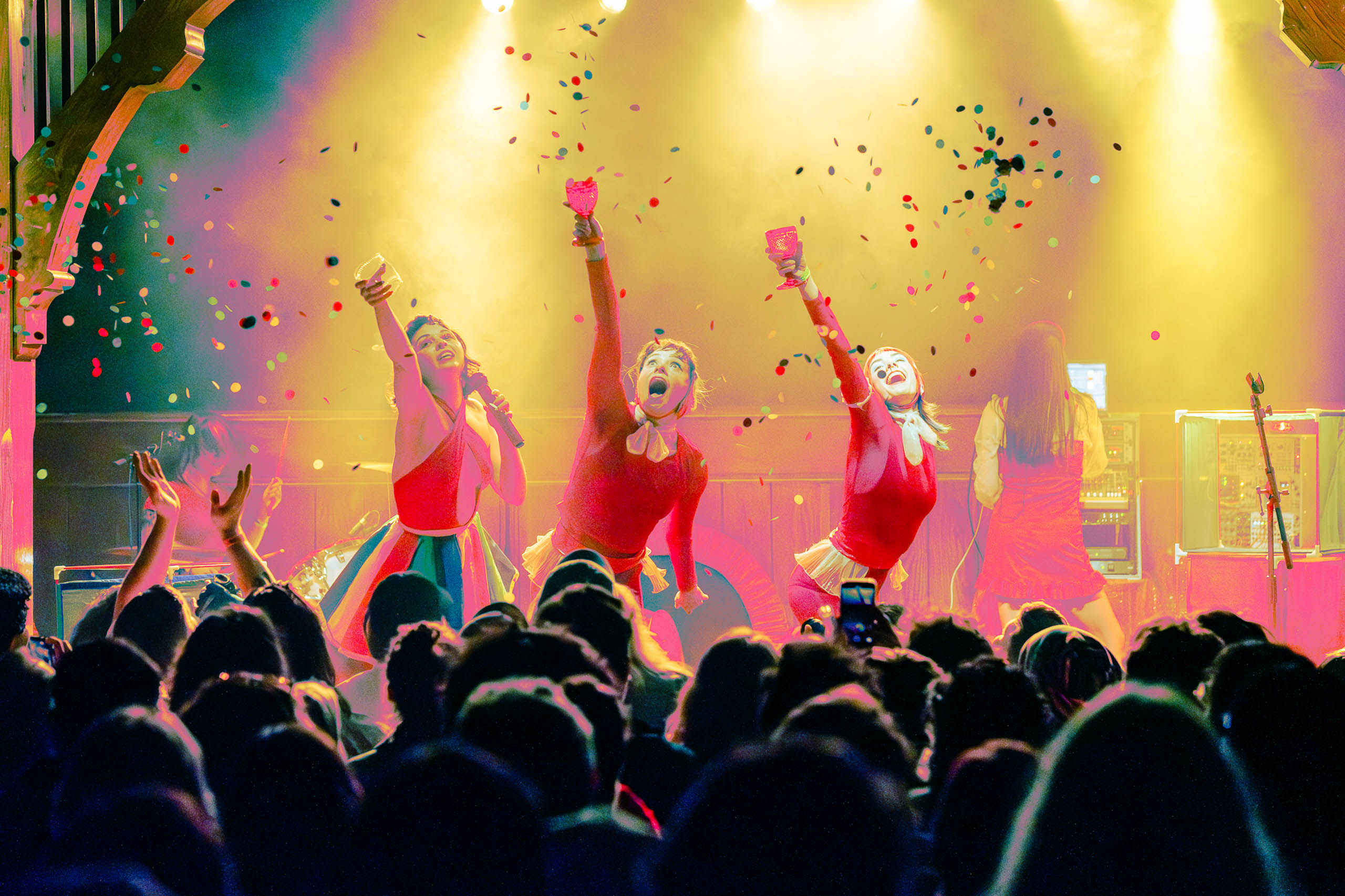 Fantasy met reality over the weekend with two back-to-back sold-out shows at Schubas in Chicago. Every moment on Switcheroo that made you smile is here for the live show, embellished by the visual spectacle of oversized hammers, a rainbow parachute, trampolines, and confetti, all coordinated in the ultimate synchronized dance you can’t take your eyes off of. What might otherwise be called a small stage has become a veritable clown car of endless props and surprises. The fullest possibility of live music has been realized tonight.